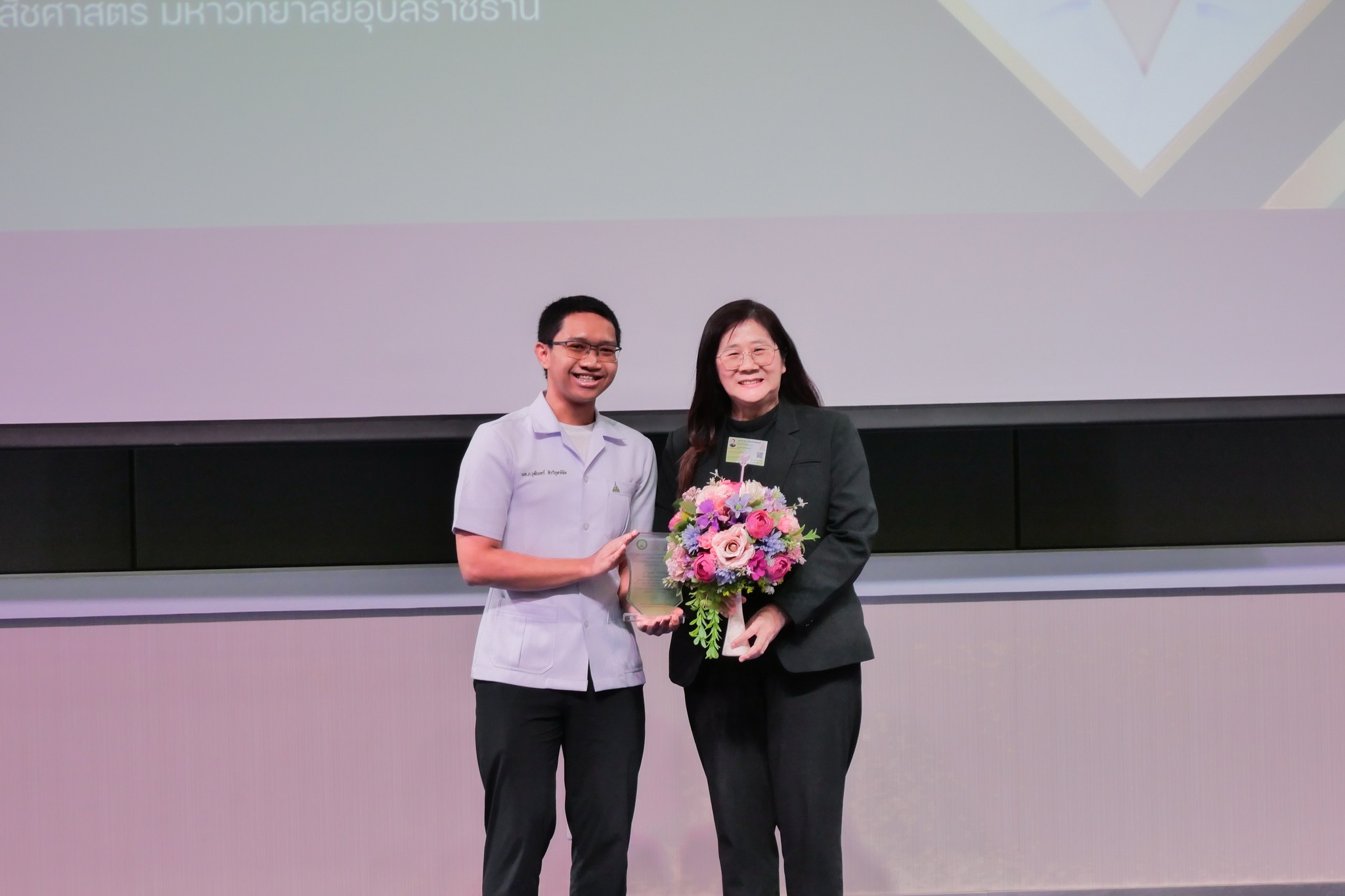 นางสาววชิราภรณ์ โพธิ์เงิน และ ผู้ช่วยศาสตราจารย์ ดร.ธราพงษ์ ศรีสงคราม