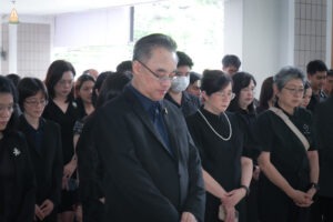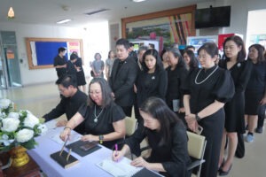 โดยมี ผู้ช่วยศาสตราจารย์ ดร.เภสัชกร นรินทร์ จันทร์ศรี คณบดีคณะเภสัชศาสตร์ เป็นประธานในพิธี กล่าวน้อมสำนึกในพระมหากรุณาธิคุณ พร้อมนำคณะผู้บริหาร คณาจารย์ เจ้าหน้าที่ และบุคลากรของคณะเภสัชศาสตร์ ร่วมลงนามถวายความอาลัย และร่วมสงบนิ่งเป็นเวลา ๙๓ วินาที เพื่อน้อมรำลึกและแสดงความสำนึกในพระมหากรุณาธิคุณอย่างหาที่สุดมิได้ที่ทรงมีต่อปวงชนชาวไทย