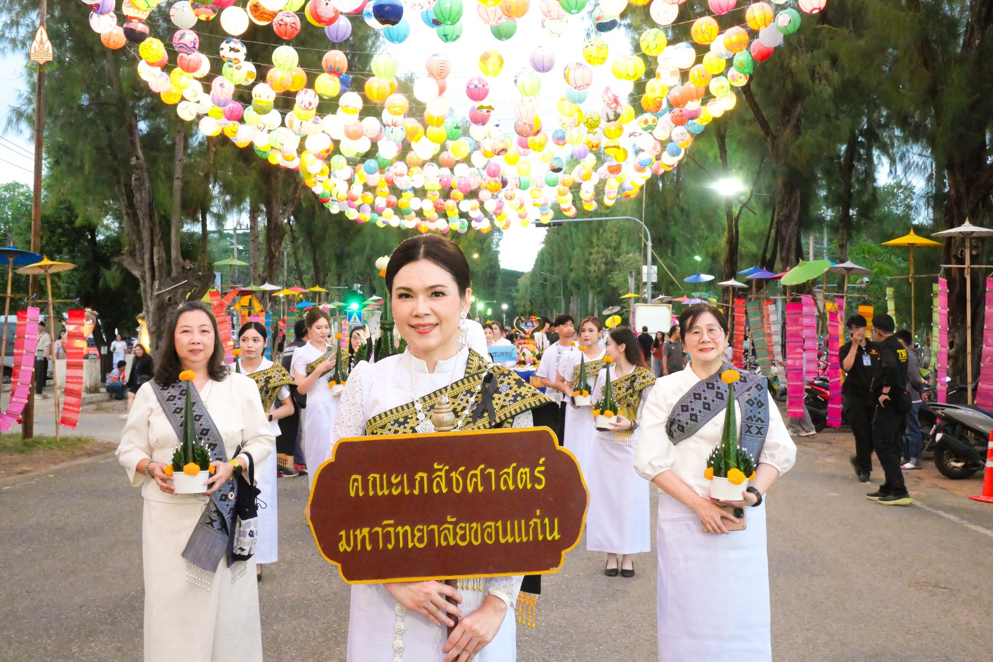 เมื่อวันที่ 3 พฤศจิกายน 2568 เวลา 16.00 น. คณะเภสัชศาสตร์ มหาวิทยาลัยขอนแก่น นำโดย ผู้ช่วยศาสตราจารย์ ดร.ภก.นรินทร์ จันทร์ศรี คณบดีคณะเภสัชศาสตร์ พร้อมด้วยรองศาสตราจารย์ ดร.ภญ.สุภาวดี ดาวดี รองคณบดีฝ่ายการศึกษาและประกันคุณภาพ รองศาสตราจารย์ ดร.ภญ.เยาวเรศ ชูลิขิต รองคณบดีฝ่ายวิจัย นวัตกรรม และวิเทศสัมพันธ์ รวมทั้งบุคลากรคณะเภสัชศาสตร์ เข้าร่วมขบวนในงาน “สีฐานเฟสติวัล นานาชาติ บุญสมมาบูชานาค ประจำปี 2568 (Sithan International Festival 2025)”