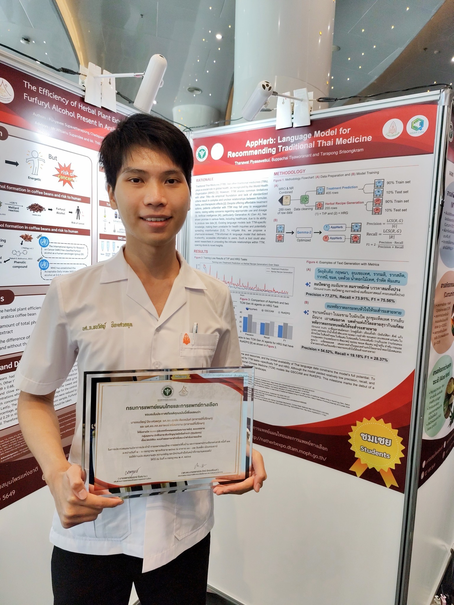 ในการประกวดผลงานวิชาการภายในงาน มหกรรมสมุนไพรแห่งชาติ ครั้งที่ 22 (Thailand Herbal Expo 2025) จัดขึ้นระหว่างวันที่ 2–6 กรกฎาคม 2568 ณ IMPACT เมืองทองธานีซึ่งในปีนี้จัดขึ้นภายใต้แนวคิด “Thai Traditional Wisdom: Thai Soft Power for Economic Growth” เพื่อส่งเสริมการนำภูมิปัญญาไทยด้านสมุนไพรและการแพทย์แผนไทยมาเชื่อมโยงกับการพัฒนาเศรษฐกิจและสุขภาพอย่างยั่งยืน