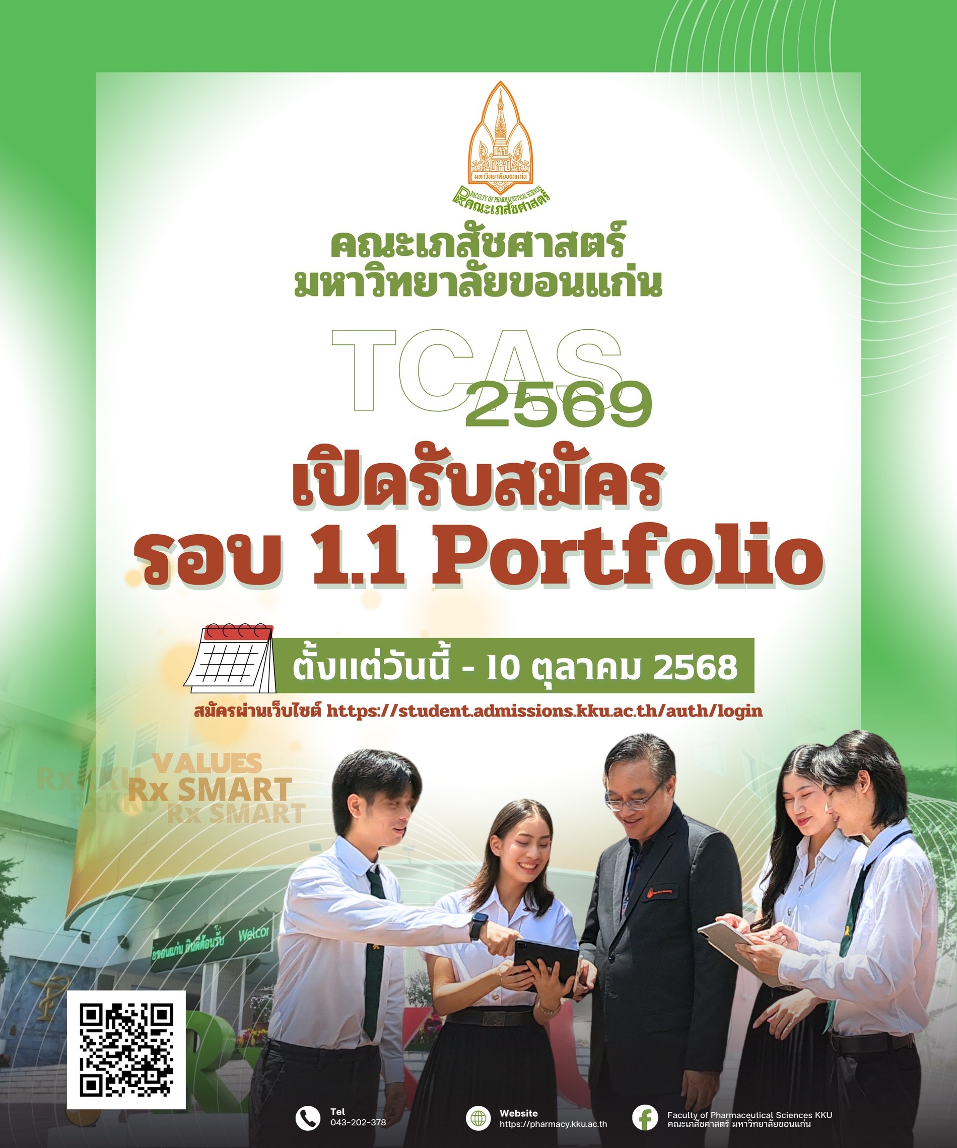 คณะเภสัชศาสตร์ มหาวิทยาลัยขอนแก่น แจ้งการรับสมัครบุคคลเข้าศึกษาในระดับปริญญาตรี ปีการศึกษา 2569