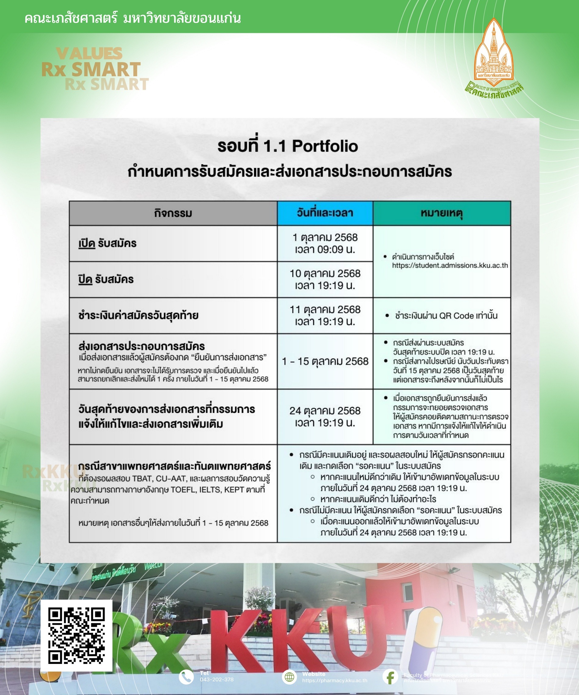 - เปิดรับสมัครแล้ว รอบ 1.1 Portfolioเปิดรับสมัครตั้งแต่ วันนี้ – 10 ตุลาคม 2569
