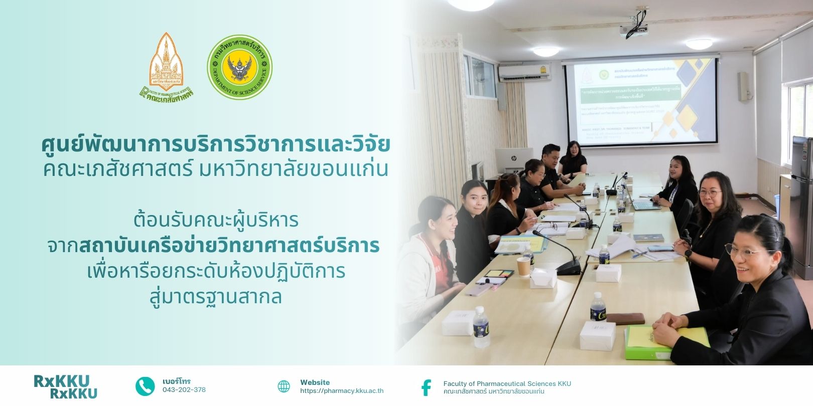 เมื่อวันที่ 25 กุมภาพันธ์ 2569 ห้องปฏิบัติการวิเคราะห์คุณภาพสมุนไพรและผลิตภัณฑ์สุขภาพ ของศูนย์พัฒนาการบริการวิชาการและวิจัย คณะเภสัชศาสตร์ มหาวิทยาลัยขอนแก่น นำโดยรศ.ดร.เยาวเรศ สุมานนท์ รองคณบดีฝ่ายวิจัย นวัตกรรมและวิเทศสัมพันธ์ พร้อมด้วย รศ.ดร. สุภาวดี ดาวดี รองคณบดีฝ่ายการศึกษาและประกันคุณภาพ ผศ.ดรอรวรรณ มนทกานติรัตน์ และทีมงานบุคลากรในระบบคุณภาพ ได้ให้การต้อนรับคณะผู้บริหารจาก สถาบันเครือข่ายวิทยาศาสตร์บริการ (สบร.)