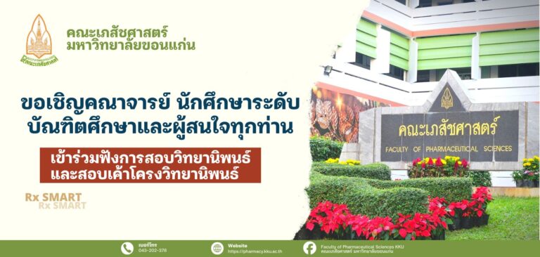ข่าวประชาสัมพันธ์ขอเชิญ คณาจารย์ นักศึกษาระดับบัณฑิตศึกษาและผู้สนใจร่วมฟังการสอบวิทยานิพนธ์ และสอบเค้าโครงวิยานิพนธ์ เดือน กุมภาพันธ์ 256923 กุมภาพันธ์ 202611 มีนาคม 2026คณะเภสัชศาสตร์ มหาวิ […]Read more