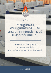 2563 | คู่มือปฏิบัติงาน | การปฏิบัติงาน ด้านปฏิบัติการเทคโนโลยี สารสนเทศคณะเภสัชศาสตร์ มหาวิทยาลัยขอนแก่น | ธนันชนัย อุ่นสิม นักจัดการงานทั่วไป | rana@kku.ac.th | ![]() Download |