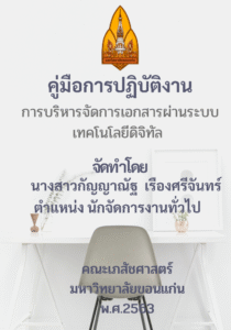 2563 | คู่มือปฏิบัติงาน | การบริหารจัดการเอกสารผ่านระบบ เทคโนโลยีดิจิทัล | กัญญาณัฐ เรืองศรีจันทร์ นักจัดการงานทั่วไป | yuparu@kku.ac.th | ![]() Download |